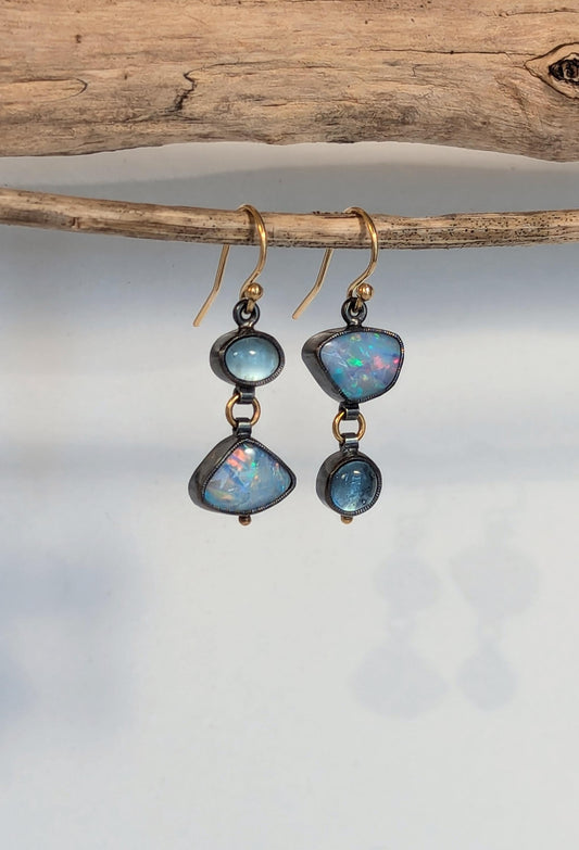 Australian Opal Earrings, Aquamarine Earrings, Sterling Silver 18K Gold