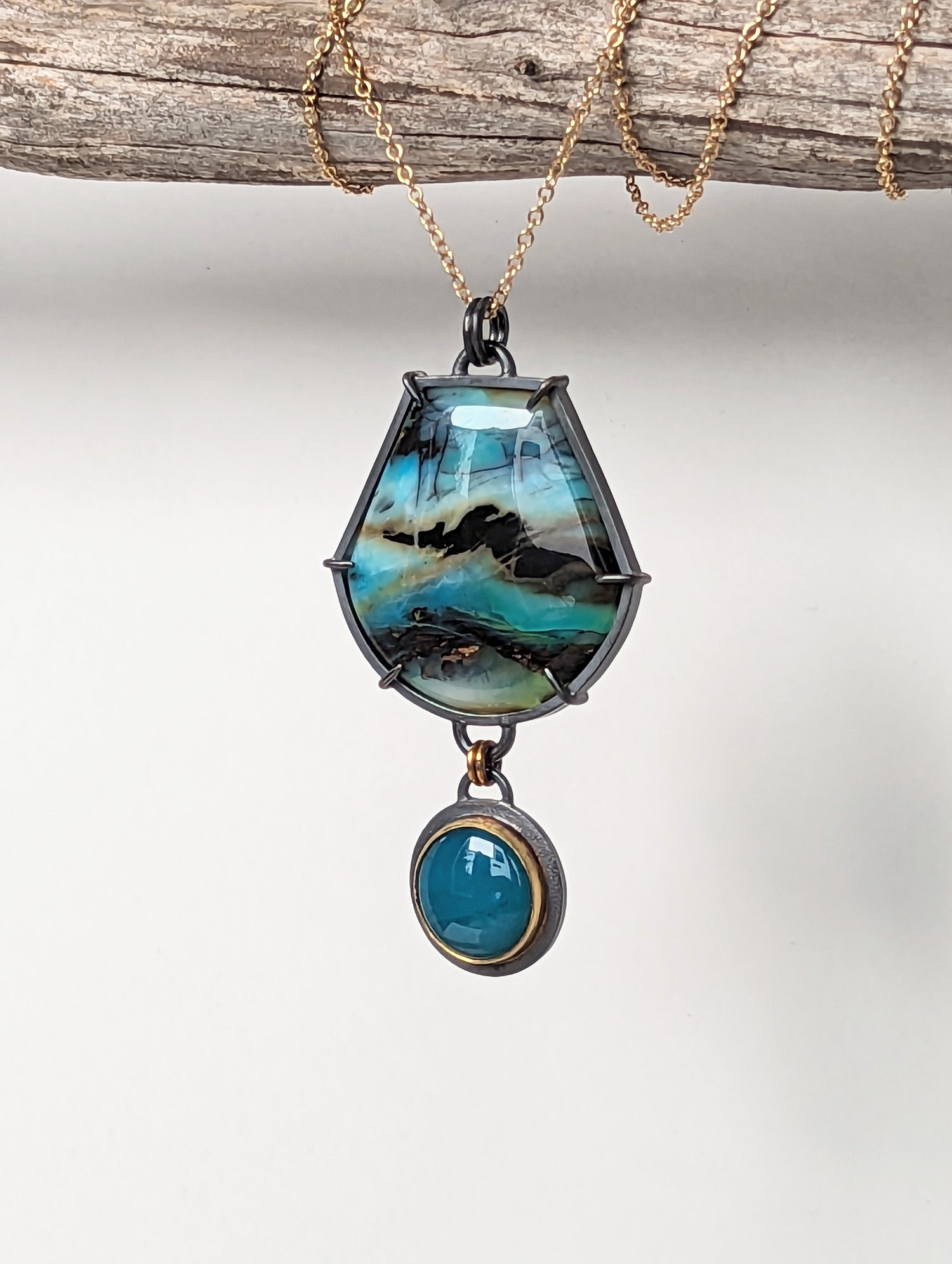 Abalone Pendant, Oxidized Sterling Silver, 18K Gold Accents