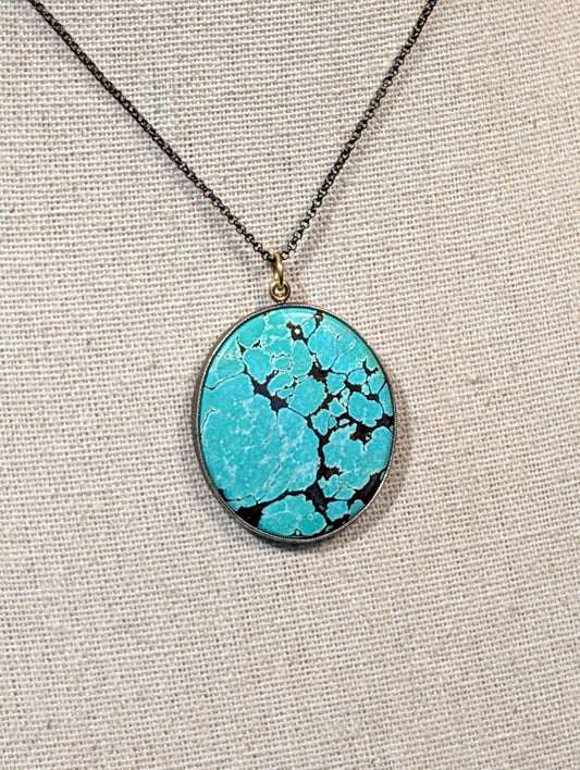 Hubei Turquoise Pendant, Sterling Silver, 18K Gold