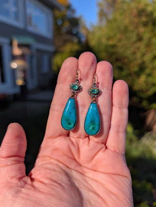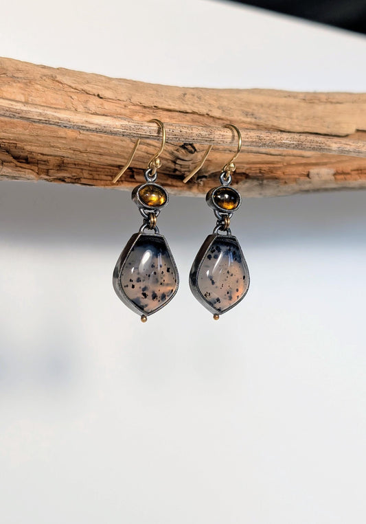 Montana Agate Earrings, Tourmaline Earrings, Sterling SIlver, 18K Gold