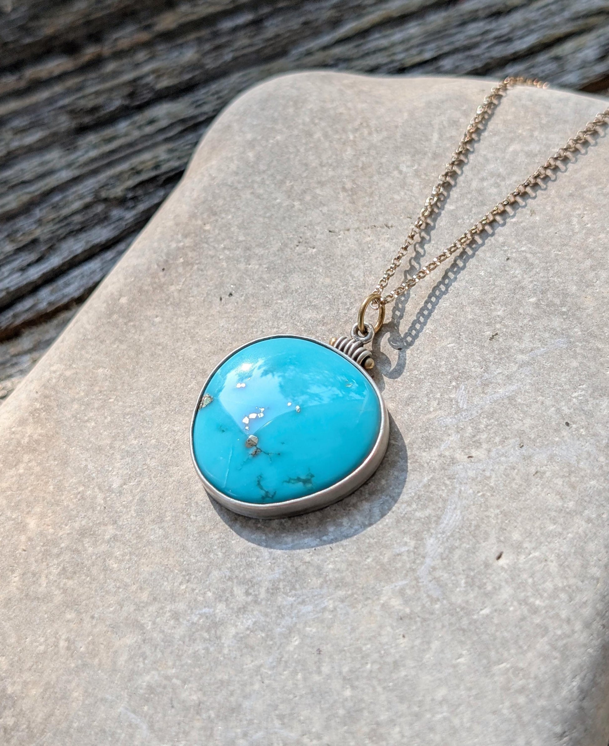 Kingman Turquoise Pendant, Pyrite Turquoise Pendant, Sterling Silver, 18K Gold